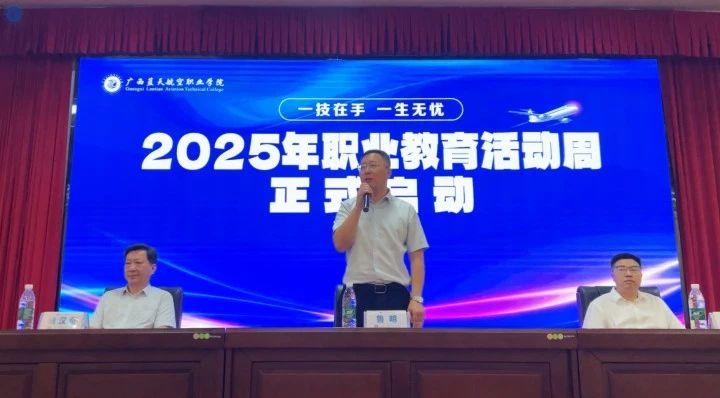 为深入贯彻落实党的二十大和二十届二中、三中全会精神,全面落实习近平总书记关于教育的重要论述和全国教育大会精神,大力宣传beat365职业教育成效,尽情展示师生风采,5月16日上午,beat3652025年职业教育活动周启动仪式在天宫楼报告厅举行。执行副校长鲁明,副校长刘小飞,党委副书记、纪委书记姚汉奇,以及100余名师生代表等参加启动仪式。仪式由航空管理学院专任教师覃延昊主持。