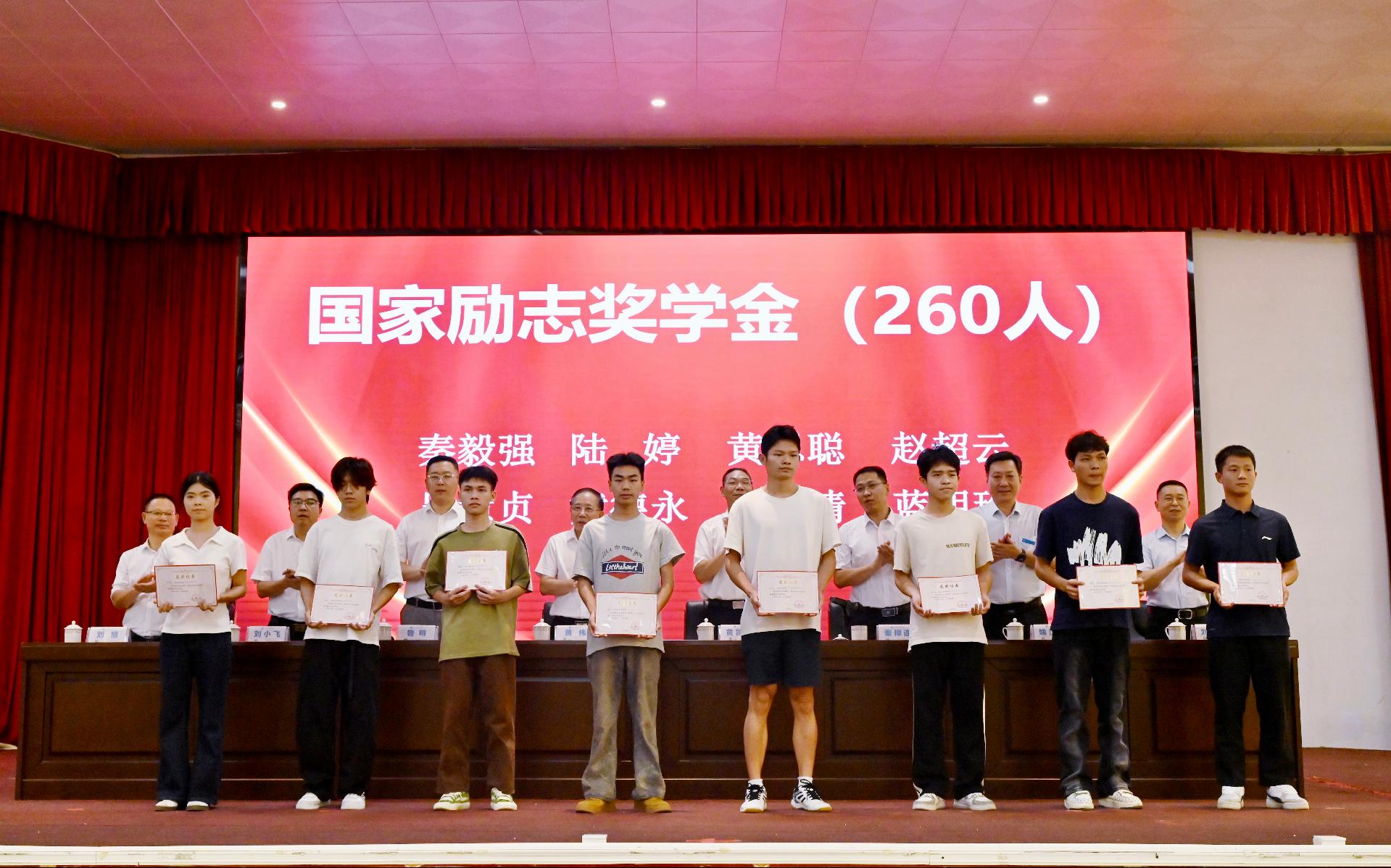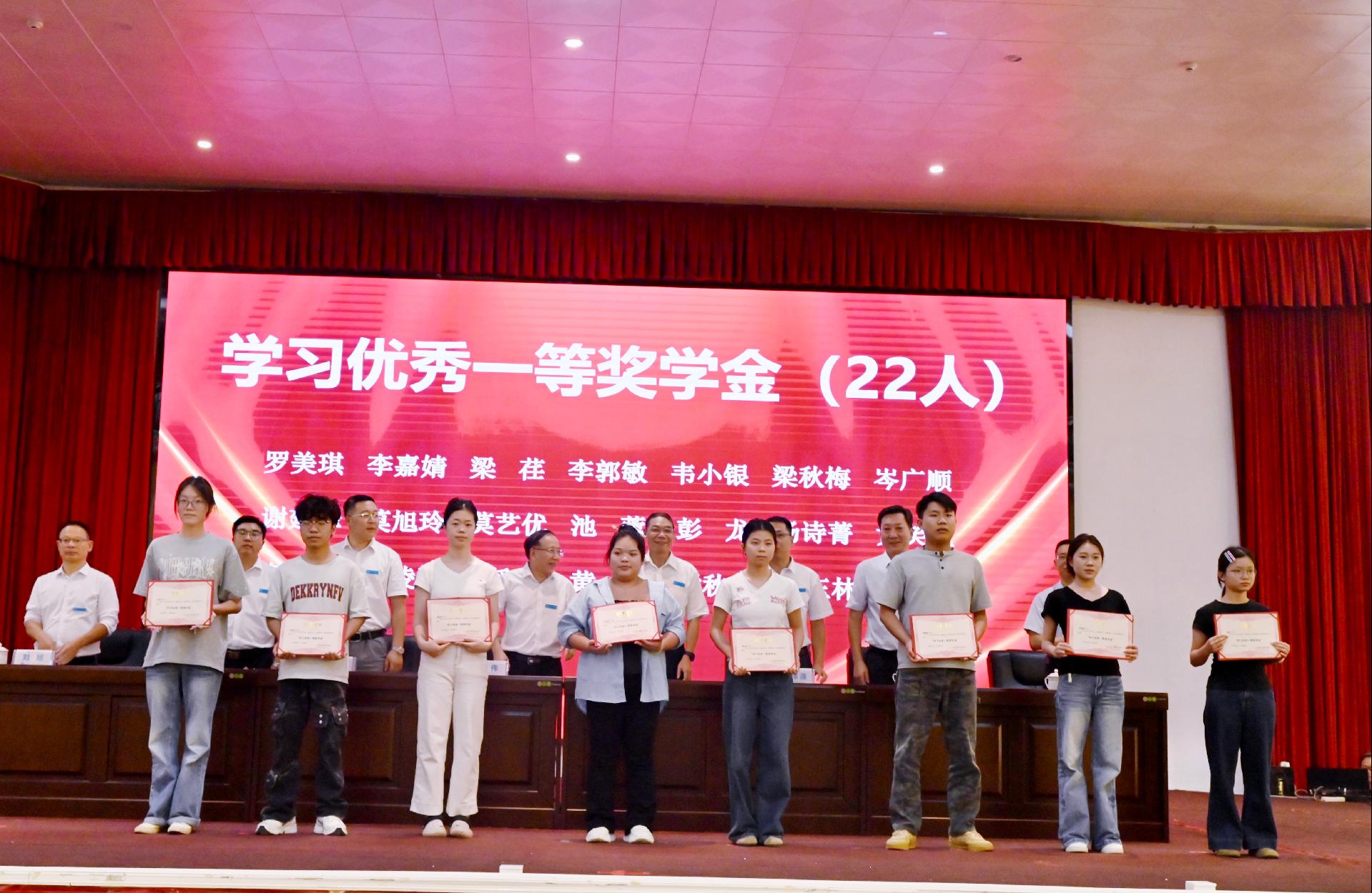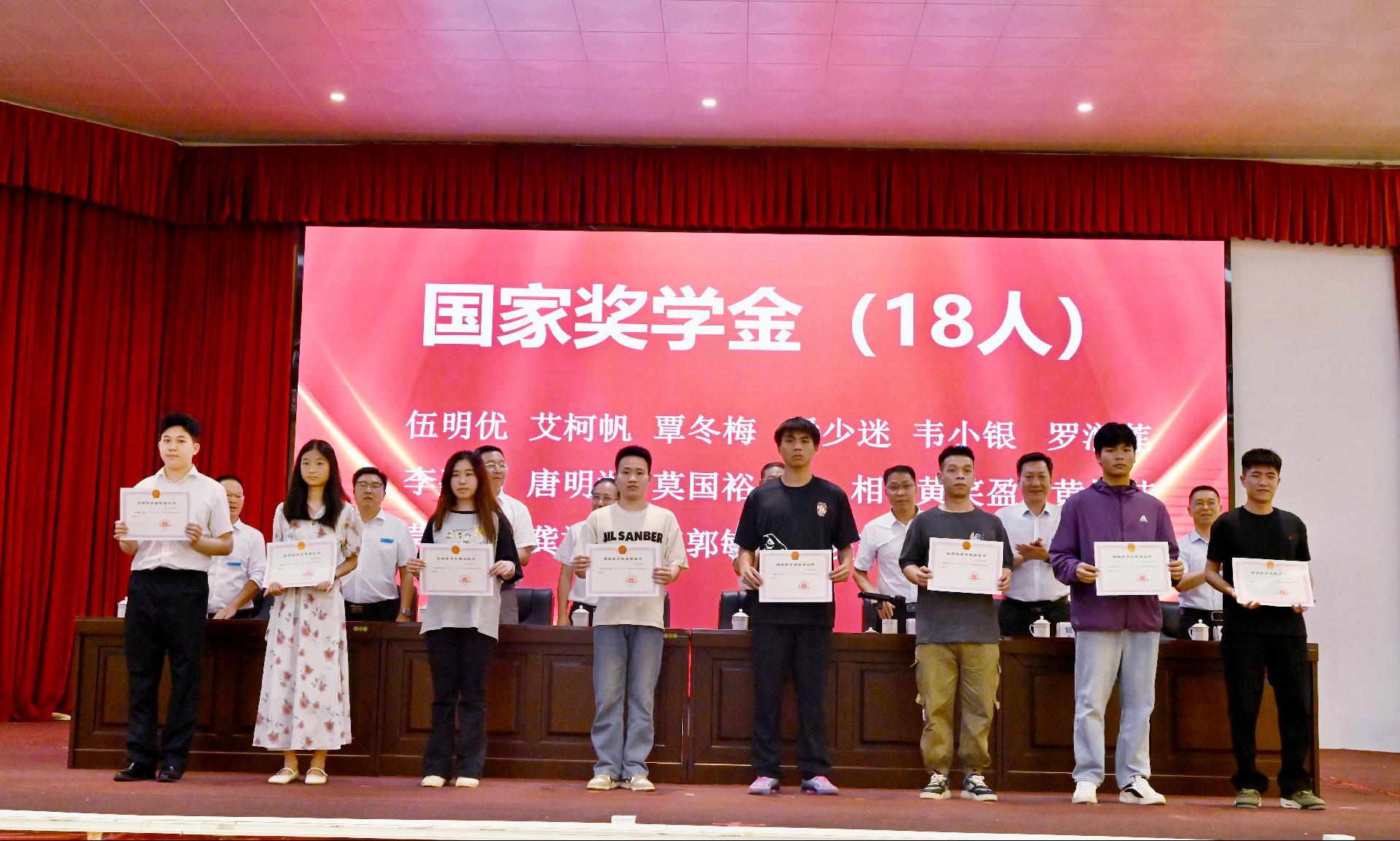 随后出席大会的校领导为获得2023-2024学年国家励志奖学金、国家奖学金、自治区人民政府奖学金、学习优秀奖学金、先进班集体的个人及集体颁奖,为自治区级、校级优秀毕业生代表颁发荣誉证书。