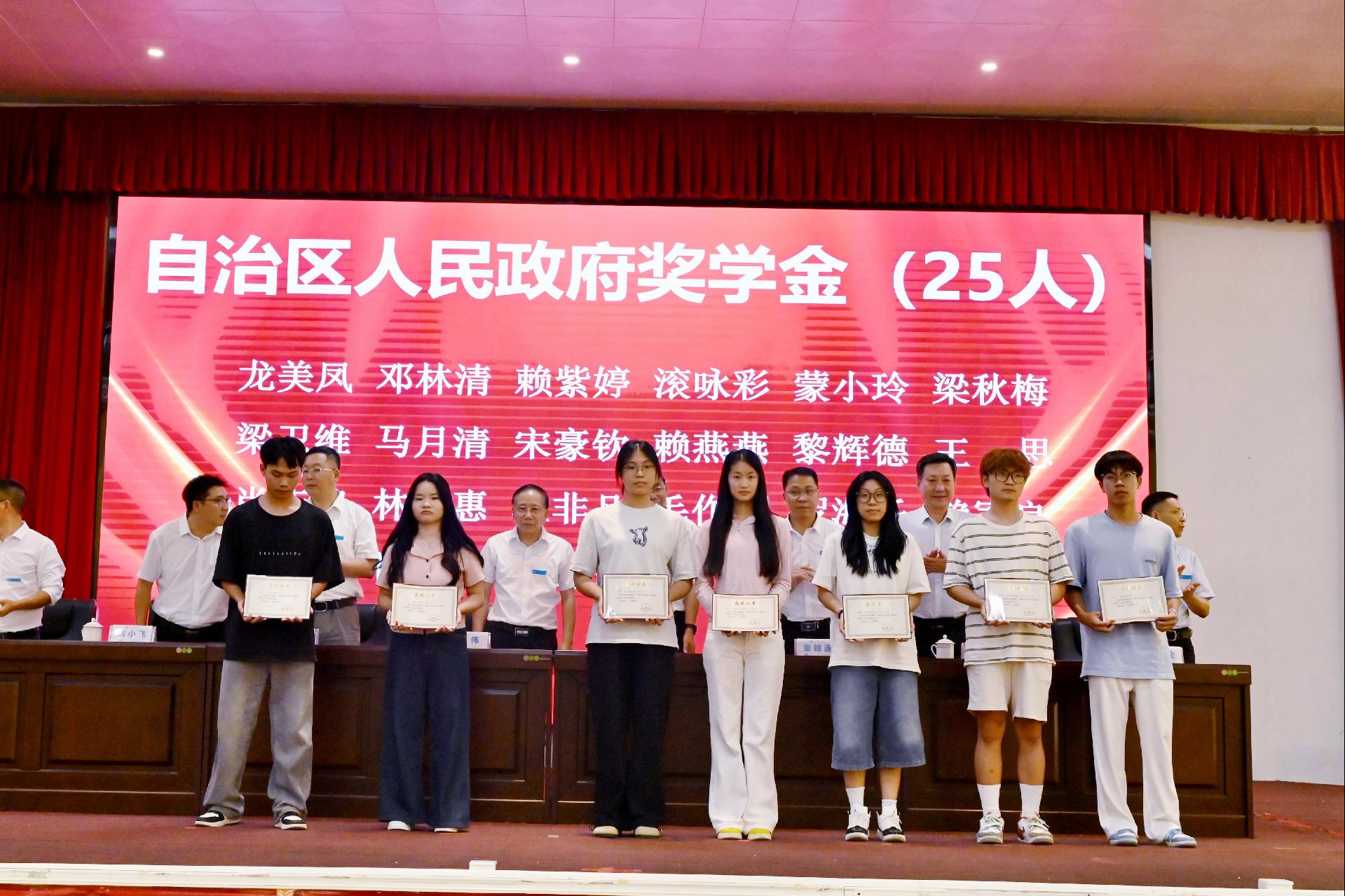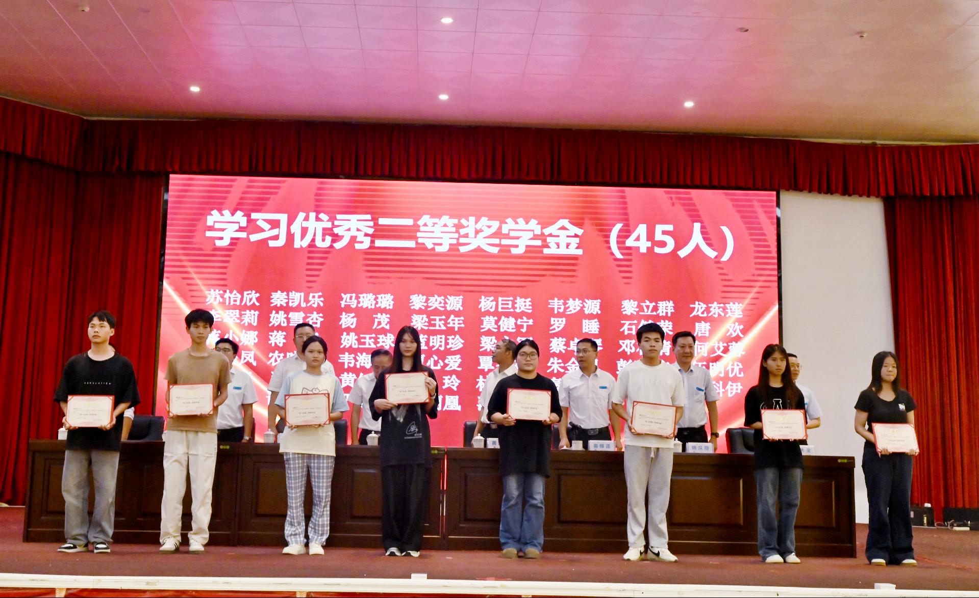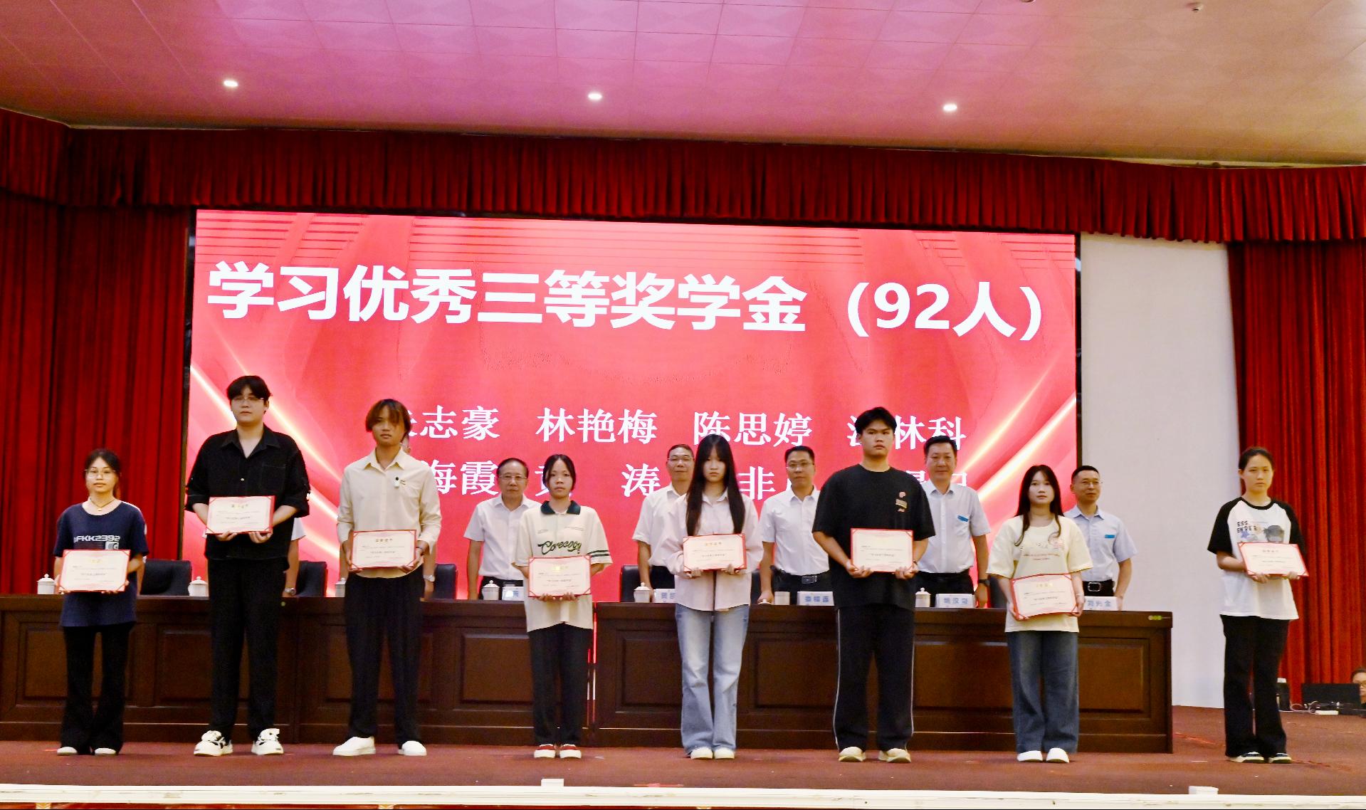 随后出席大会的校领导为获得2023-2024学年国家励志奖学金、国家奖学金、自治区人民政府奖学金、学习优秀奖学金、先进班集体的个人及集体颁奖,为自治区级、校级优秀毕业生代表颁发荣誉证书。